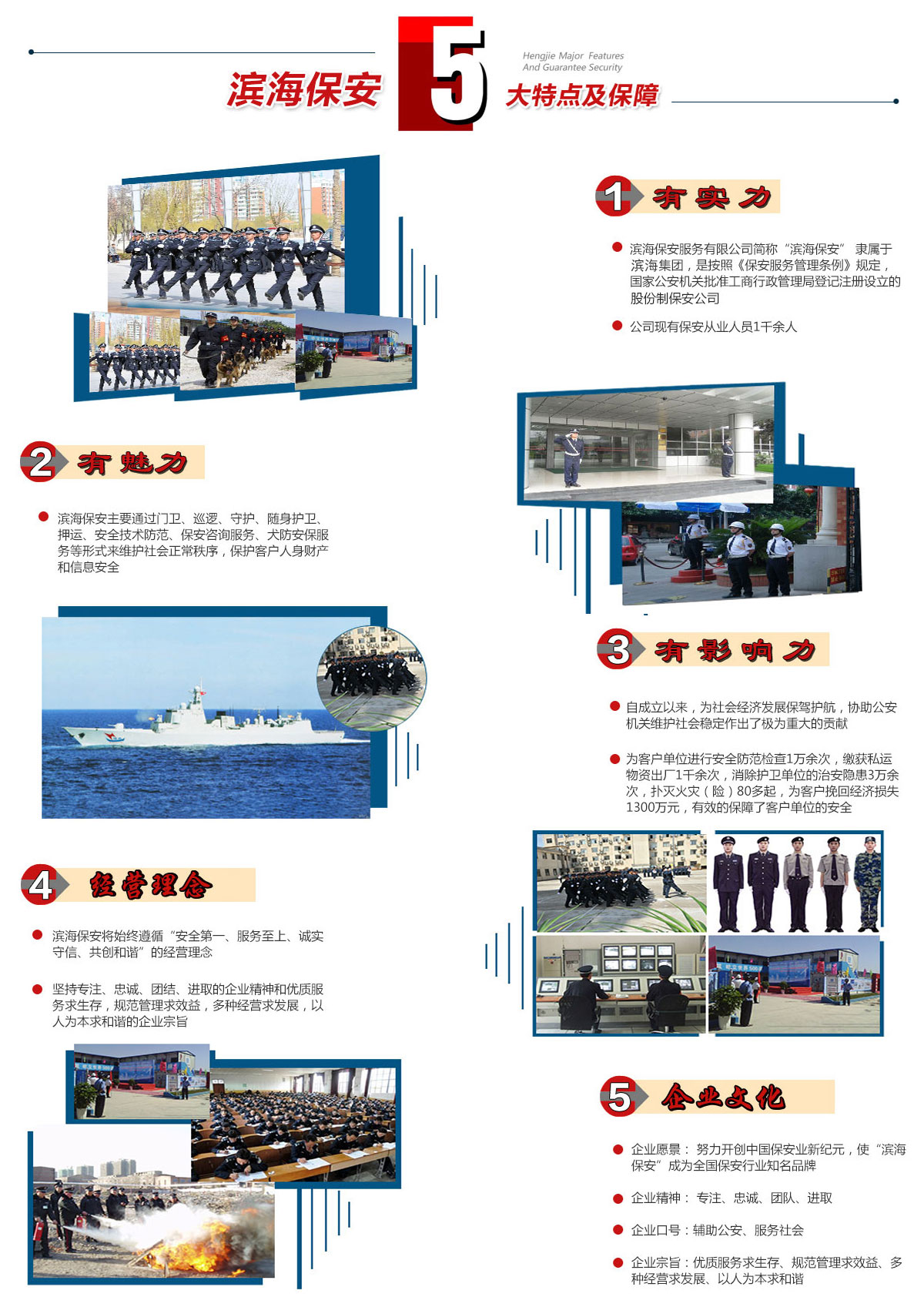 山東濱海保安服務(wù)有限公司簡稱“濱海保安” 隸屬于濱海集團(tuán),是按照《保安服務(wù)管理?xiàng)l例》規(guī)定,國家公安機(jī)關(guān)批準(zhǔn)工商行政管理局登記注冊(cè)設(shè)立的股份制保安公司。